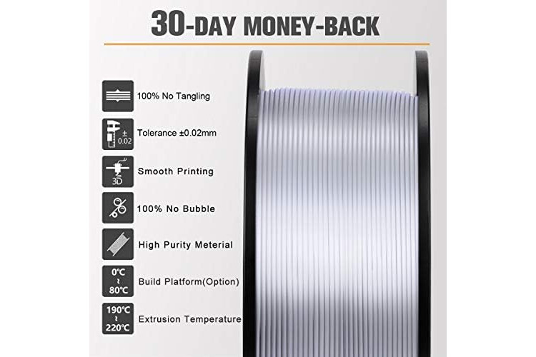 ⑤【Recommend Settings】We recommend printing the Silk PLA filament at nozzle temperature of 200-230°C, bed temperature of 60-80°C, and printing speed of 30-60mm/s.