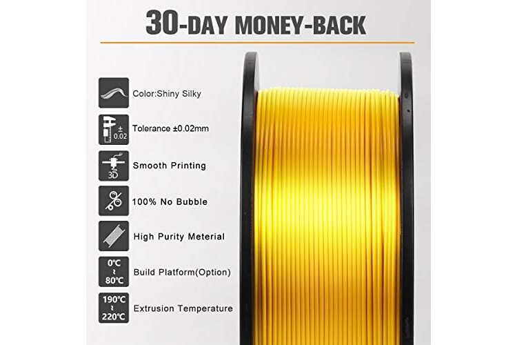 【Dimensional Accuracy & Consistency】 advanced CCD diameter measuring and self-adaptive control system in the manufacturing guarantee these PLA Silk filaments of 1.75 mm diameter, dimensional accuracy + / - 0.02 mm; 1kg spool (2.2lbs)