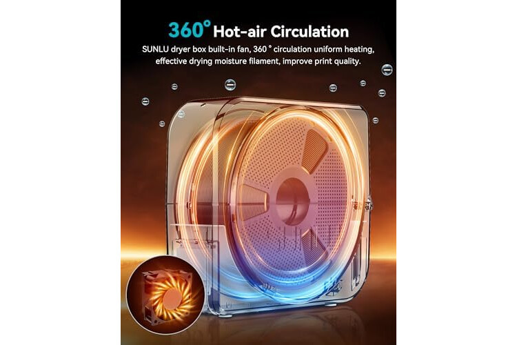 【Say Goodbye to Poor 3D Printing by Wet Filament】Wet 3d printing filament will caused to stringing, clogging, poor adhesion, and Layer Shift. SUNLU FDM 3D Filament Dryer Enclosure can drying while printing to improve your 3D model, reducing the impact of the objective environment on the printing of 3d filaments.