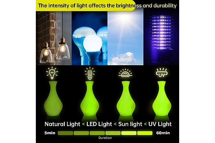 ①【Glow in the Dark PLA】SUNLU glow in the dark PLA filament contains phosphorescent materials, which can glow in the dark after absorbing light energy. If it is exposed to UV lights, the luminous effect will be better.