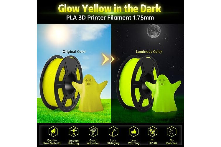 SUNLU Glow in The Dark PLA Filament, Neatly Wound Luminous PLA 3D Printer Filament 1.75mm Dimensional Accuracy +/- 0.02mm, Fit Most FDM 3D Printers, 1kg Spool (2.2lbs), (Yellow PLA, Glow Yellow)