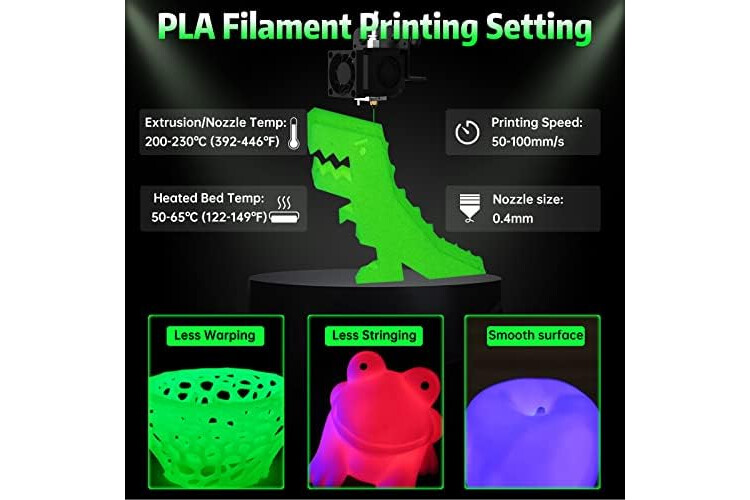 ④【Recommend Settings】We recommend printing at a nozzle temperature of 200-210°C, bed temperature of 50-65°C, printing speed of 50-100mm/s.