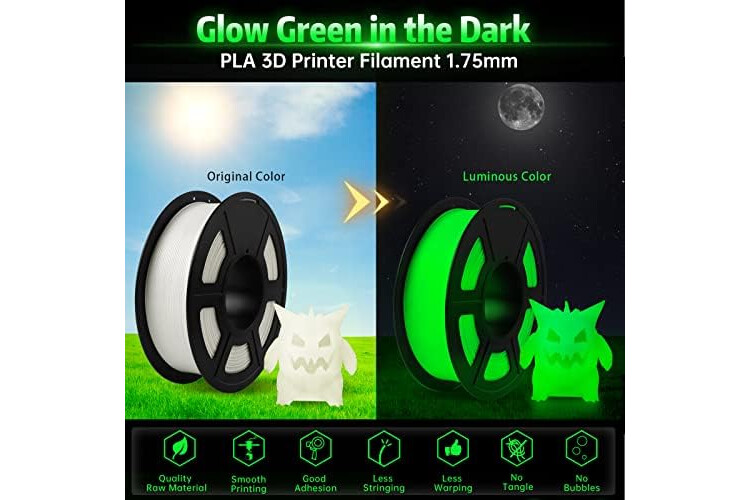 ①【Glow in the Dark PLA】SUNLU glow in the dark PLA filament contains phosphorescent materials, which can glow in the dark after absorbing light energy. If it is exposed to UV lights, the luminous effect will be better.