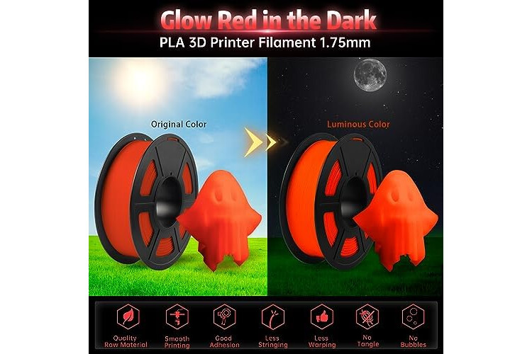 SUNLU Glow in The Dark PLA Filament, Neatly Wound Luminous PLA 3D Printer Filament 1.75mm Dimensional Accuracy +/- 0.02mm, Fit Most FDM 3D Printers, 1kg Spool (2.2lbs), (Red PLA, Glow Red)