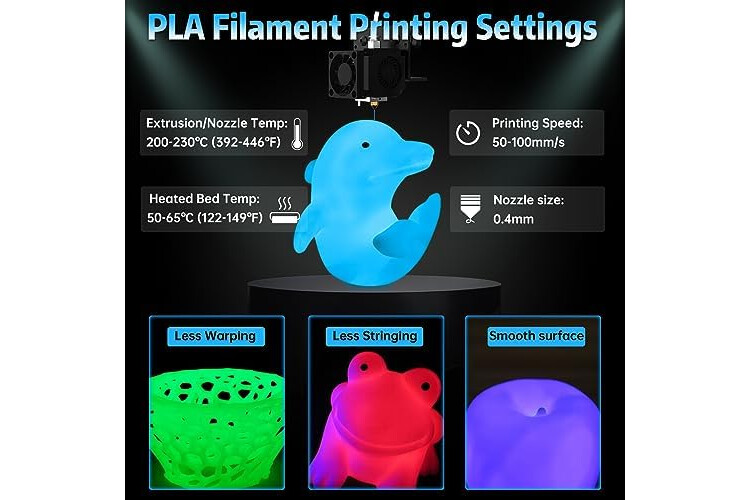 ④【Recommend Settings】We recommend printing at a nozzle temperature of 200-210°C, bed temperature of 50-65°C, printing speed of 50-100mm/s.