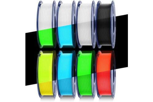 【8 Rolls of 0.25kg PLA, 2kg in Total】- Color: Black, White, White PLA Glowing Green, White PLA Glowing Blue, Blue PLA Glowing Blue,Green PLA Glowing Green, Yellow PLA Glowing Yellow, Yellow PLA Glowing Red.