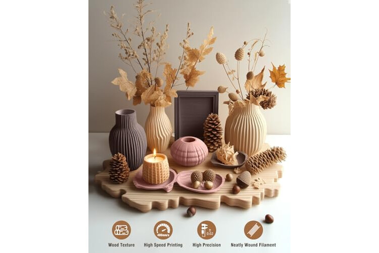 【20% Real Wood Fibers】SUNLU 1.75mm PLA filament contains 20% wood fiber instead of wood flour. This ensures the real wood structure and texture. Satisfy the demand for wooden printing models.