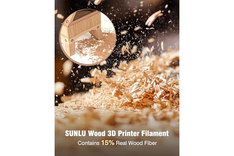 【20% Real Wood Fibers】SUNLU 1.75mm PLA filament contains 20% wood fiber instead of wood flour. This ensures the real wood structure and texture. Satisfy the demand for wooden printing models.