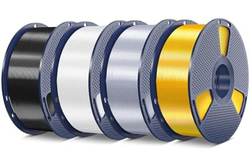 SUNLU Silk Pla Plus Filament 4kg Bundle, Shiny Silk Surface Pla+ 3D Printer Filament 1.75mm ±0.02mm, Glossy 3D Printing Filament, 1kg Spool, 4 Packs. (Light Gold+Silver+Black+White)