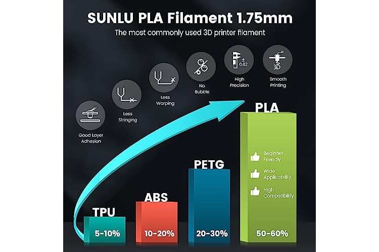 【SUNLU PLA 3D Printer Filament】- SUNLU PLA filament is reliable, versatile, and easy to use. No clogs, bubbles, or tangles, its excellent layer adhesion ensures high-quality prints every time.