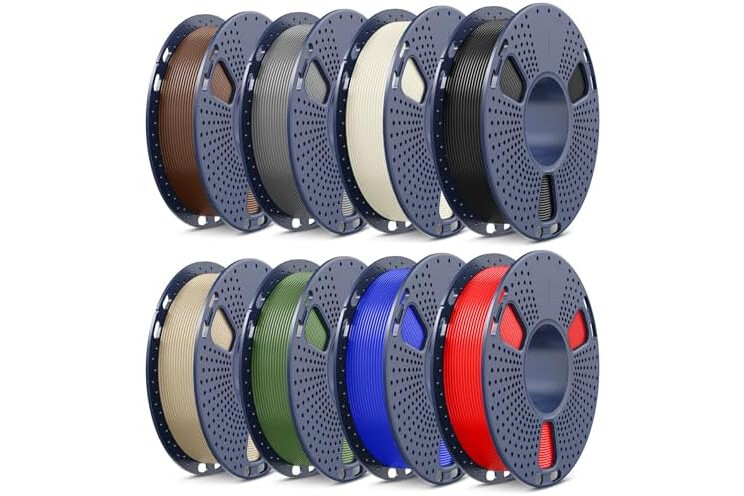 SUNLU 3D Printer Filament Bundle PLA Filament 1.75mm, Individually Vacuum Packed, 0.25kg per Spool, 2kg in Total, 8 Pack, Black+Bone White+Grey+Brown+Red+Blue+Olive Green+Wood