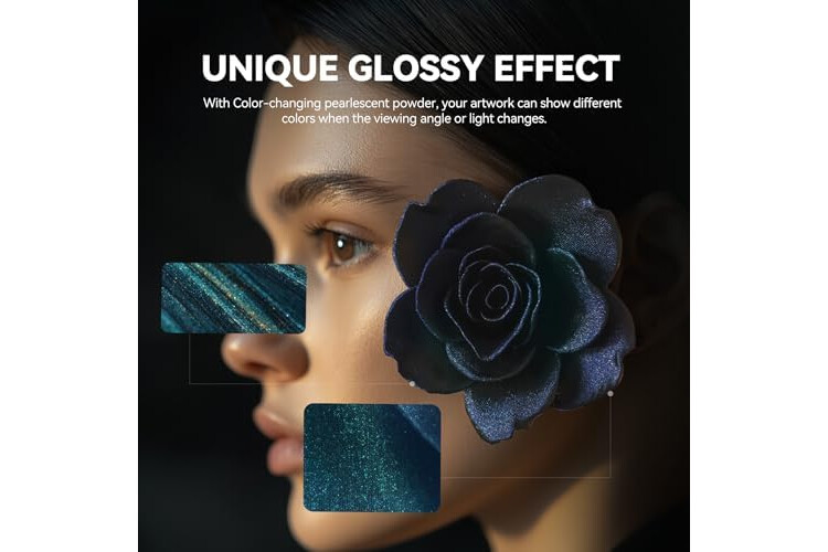 • 【Upgrade Sparkle Effect】- With Color-changing pearlescent powder, your artwork can show different colors when the viewing angle or light changes.