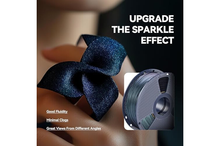 • 【Shiny PLA Filament】- Dark night black and a twinkling starlight effect, presents the printed model a galaxy starry sky effect as a whole.