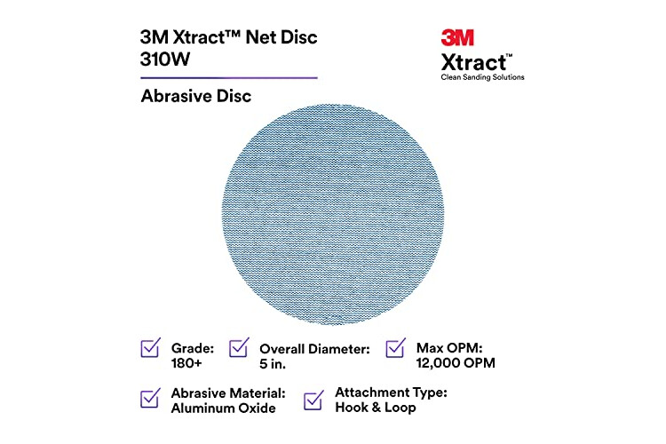 3M Xtract Net Disc 310W, 180+, 5 in, Die 500X, Pack of 50 Hook and Loop Sanding Discs, Virtually Dust-Free, Value Option for Metal, Wood, Composites, Stock Removal, and Fine Finishing