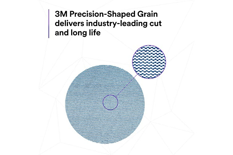 LONG LASTING 3M PRECISION-SHAPED GRAIN: Mixed with premium aluminum oxide abrasive for a fast cut and long life. The disc cuts with less pressure required by the operator, making for more comfortable sanding