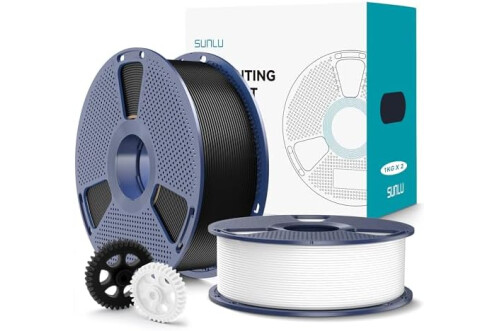 SUNLU PLA+2.0 3D Printer Filament 2KG, Upgrade PLA+ Filament 1.75mm, Tougher and Stronger, Dimensional Accuracy +/-0.02mm, 1KG per Spool, 2 Pack, 2KG Total, Black+White