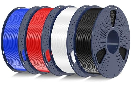 SUNLU PLA+2.0 3D Printer Filament Bundle, 4KG Upgrade PLA+ Filament 1.75mm, Tougher and Stronger, Dimensional Accuracy +/-0.02mm, 1KG per Spool, 4 Packs, 4KG Total, Black+White+Klein Blue+Red