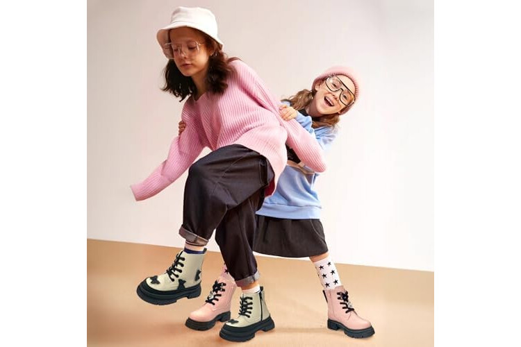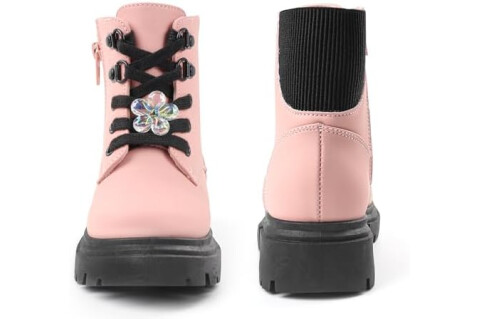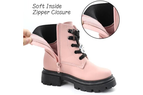 Girls Combat Boots Side Zipper Lace Up Dress Black Girls Boots for Toddler/Little Kid/Big Kid