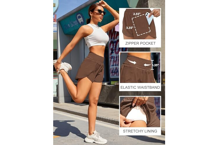 BMJL Women's Athletic Shorts High Waisted Running Short Pocket 2.5" Sporty Shorts Gym Elastic Workout Shorts(M,Brown2)