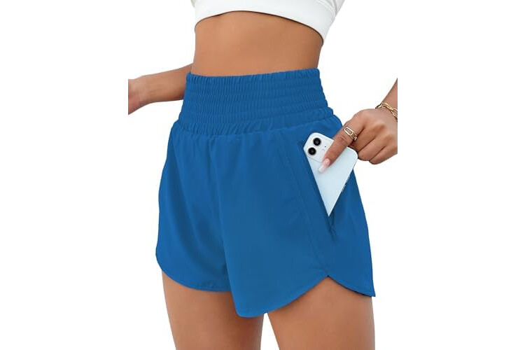 BMJL Women's Athletic Shorts High Waisted Running Short Pocket 2.5" Sporty Shorts Gym Elastic Workout Shorts(S,Ocean Blue)