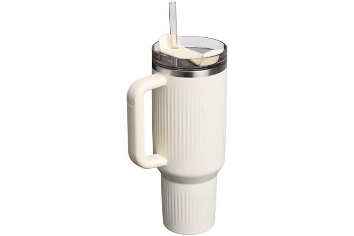 STANLEY Quencher H2.0 Tumbler with Handle and Straw 40 oz | Flowstate 3-Position Lid | Cup Holder Compatible for Travel | Insulated Stainless Steel Cup | BPA-Free | Fluted Cream Gloss