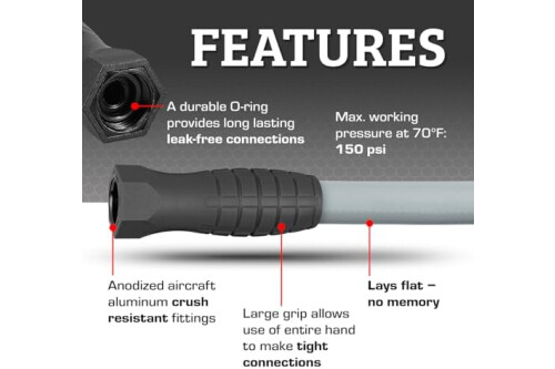 Tight leak-free connections - Anodized aircraft aluminum ends and a durable O-ring provides long-lasting leak-free connections
