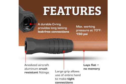 Tight leak-free connections - Anodized aircraft aluminum ends and a durable O-ring provides long-lasting leak-free connections