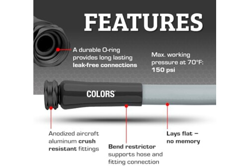 • Premium Hybrid Polymer - Won't kink under pressure, coils easily, and lays flat with zero memory