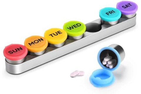 SUPERIOR MATERIAL - The body of pill case is made of a whole piece of 304 Stainless Steel , and the cover of pill box is made of BPA-free Silica Gel. With excellent hand feel and simple design, the pill box is very sturdy and durable. Say goodbye to the plastic medicine box.