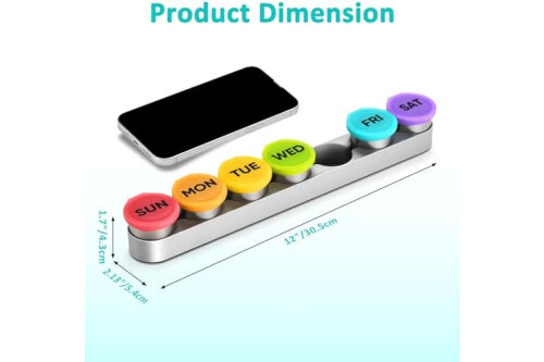 PORTABLE SIZE - The pill holder comes in a compact size that can be easily put into your backpack. This small pill holder is suitable for small pills or daily dose. Perfect for holding your daily vitamins, supplements, and other emergency pills.The whole size is about 12*1.7*2.13inch/30.5*4.3*5.4cm.