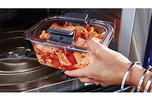 Thanks to its airtight seals and secure latches. allowing mess free transport of your favorite foods—even soups, stews, and sauces. Each piece also sport a modular design that allows convenient stacking in your fridge or lunch bag, saving you some much needed space. No need to unstack and unseal multiple containers to find a specific dish; their crystal clear Tritan construction lets you see what you've stored at a glance. This material also provides stain and odor resistance to keep the container spotless and fresh after every use. Want an easier way to re heat leftovers? Built in vents allow steam to escape so you can microwave food without removing the lid. In addition to being microwave safe, these Brilliance containers can also be placed in the freezer and the dishwasher without warping or discoloration—but should anything ever go wrong..