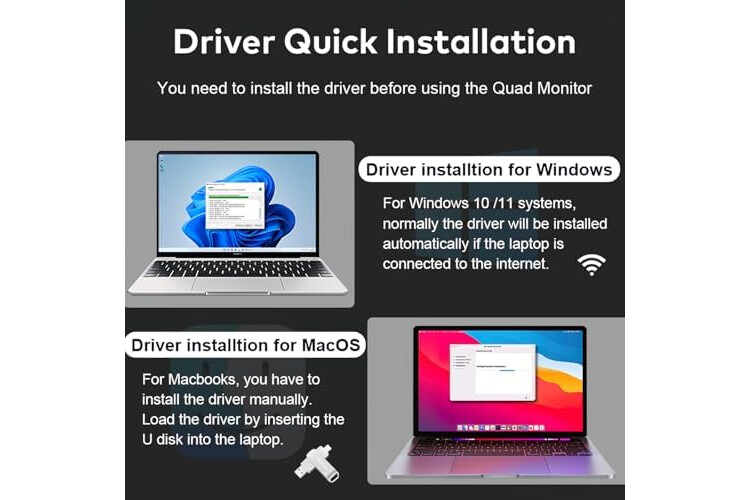 Wide Compatibility - The laptop screen extender can be used on 13.6-17.3 inch laptops, triple screen portable monitor With USB-C ports can be connected with laptops . Extender Compatible with Windows (Win10 and later only) and macOS (2019 or later Macbooks, including M1, M2, M3 chipsets) (Note: Please ensure compatibility and check laptop size before making a purchase.