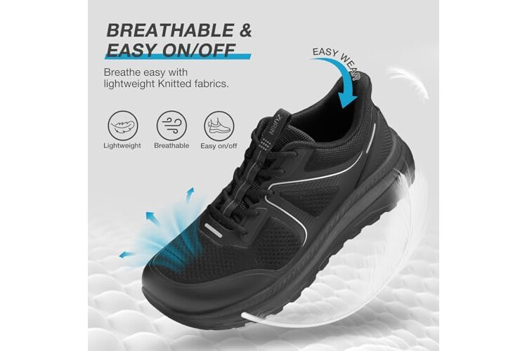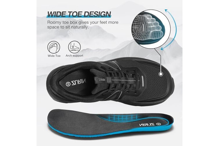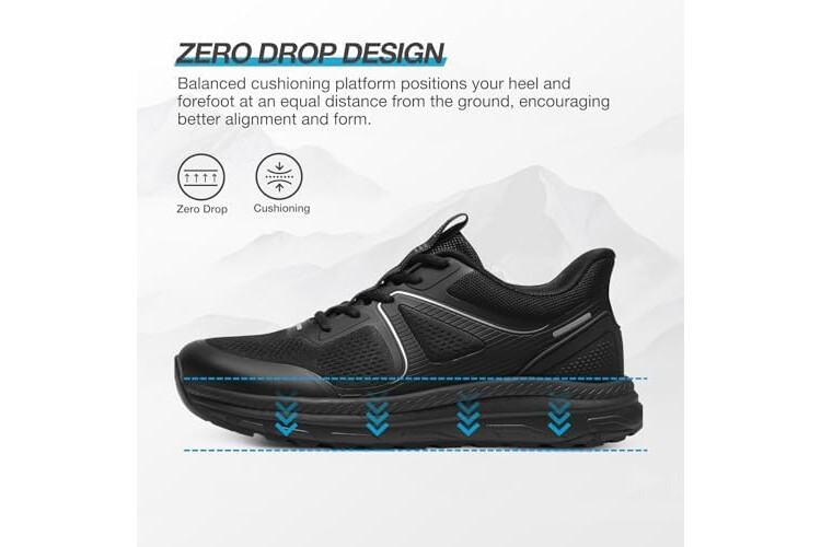 ZURIN Men's Zero Drop Running Shoes Wide Toe Box, Cushioned Supportive Mens Slip On Walking Sneakers Wide Width, Comfortable Athletic Jogging Workout Gym Tennis Shoes All Black