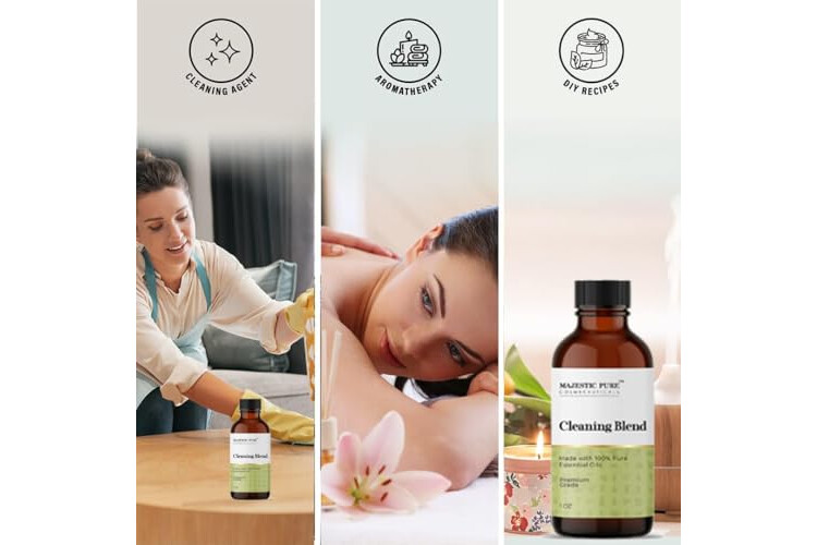 Majestic Pure Cleaning Essential Oil Blend | 100% Pure & Natural Premium Grade Oil for DIY Products, Cleaning | Blend of Lemon, Orange, Peppermint, Citronella | for Aromatherapy & Diffuser | 1oz