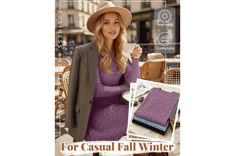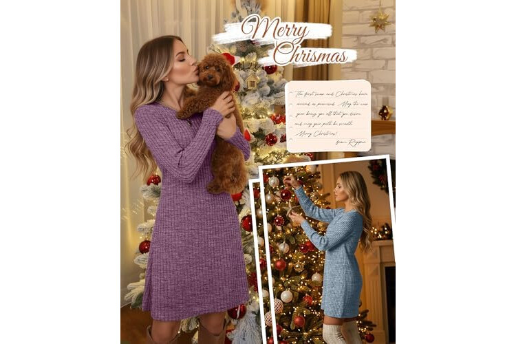 Riyiper 3 Pack Women's Long Sleeve Sweater Tunic Dresses - Loose Fitting Knit Crew Neck for Casual Fall Winter