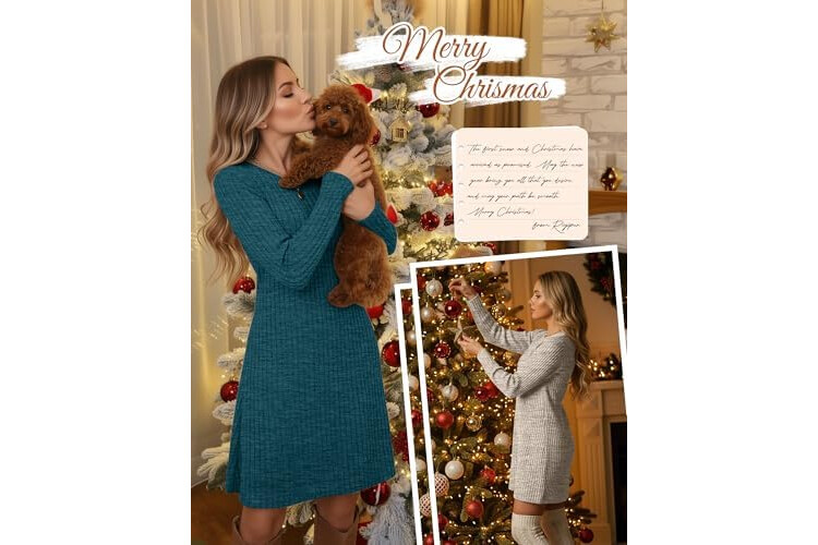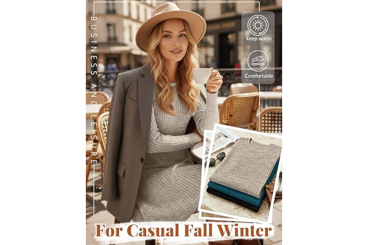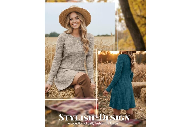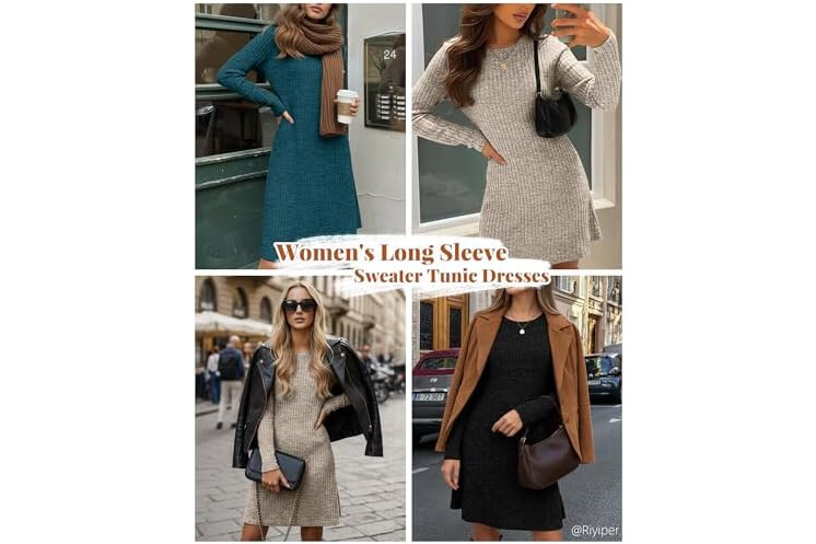 Riyiper 3 Pack Women's Long Sleeve Sweater Tunic Dresses - Loose Fitting Knit Crew Neck for Casual Fall Winter