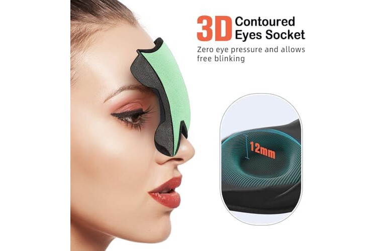 Blinking Freely: Deep 12 mm 3D contoured cup eye sockets leave larger space for blinking, maintaining your beautiful eye makeup without pressure on your eyes. This sleep mask for women and men will be a good choice for you