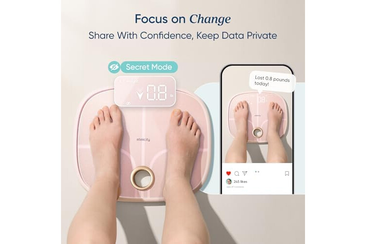 Etekcity Rechargeable Pink Smart Scale for Body Weight, BMI, Fat, Muscle Mass, Digital Bathroom Scale with 13 Metrics, Secret Mode, Bluetooth Connect to Free Apps, Cotton Candy Pink