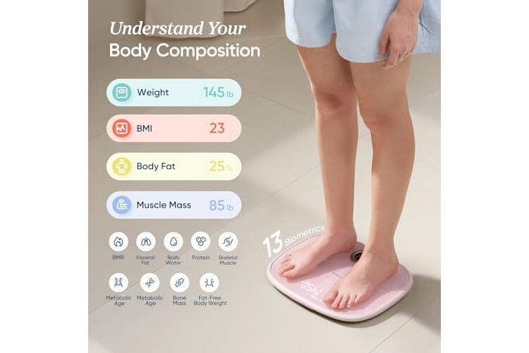 ๐๐ผ ๐๐ฒ๐๐ผ๐ป๐ฑ ๐๐ต๐ฒ ๐ฆ๐ฐ๐ฎ๐น๐ฒ: Track 13 key indicators, including Weight, BMI, Body Fat, and Muscle Mass. Accuracy down to 0.1 lb to track the progress your body is truly making