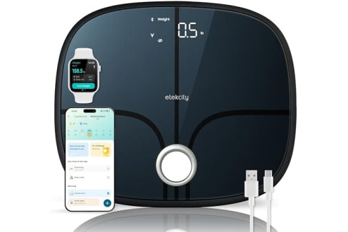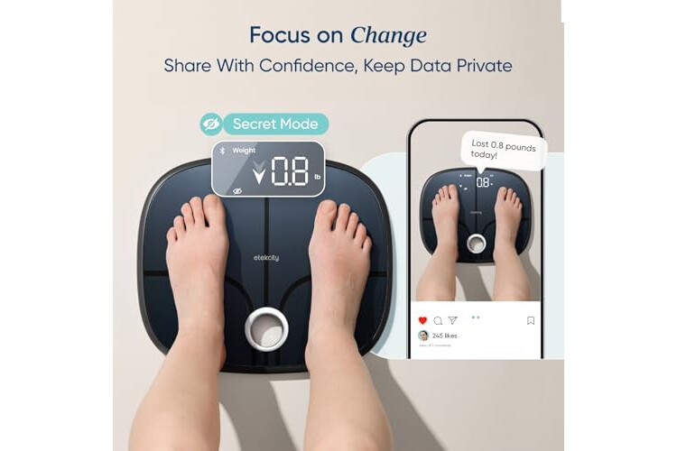Etekcity Smart Rechargeable Scale for Body Weight, BMI, Fat, Muscle Mass, Digital Bathroom Scale with 13 Metrics, Secret Mode, Bluetooth Connect to Free Apps, Stealth Black