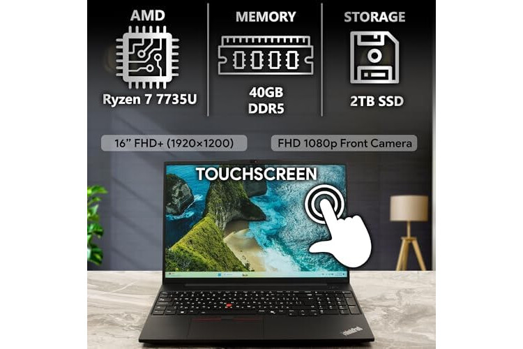 Lenovo ThinkPad E16 Gen 2, FHD+ 16" Touchscreen, AMD Ryzen 7 7735U, 40GB RAM, 2TB SSD, Fingerprint, Backlit Keyboard, WiFi 6E + BT, RJ-45, FHD Webcam, Win 11 Pro, AI Business Laptop
