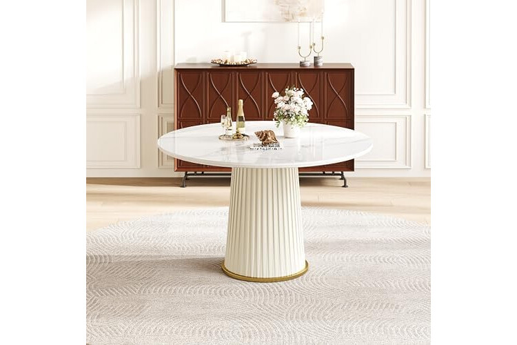 【Adaptable to Multiple Settings】Perfect for everyday family meals as well as formal business discussions, its elegant white finish and circular form complement a range of interior themes—from minimalist contemporary to refined modern chic.