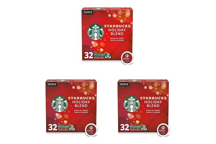 Starbucks Holiday Blend Medium Roast Coffee Single-Cup Coffee for Keurig Brewers, Herbal & Sweet Maple Notes, 32 Count (Pack of 3)