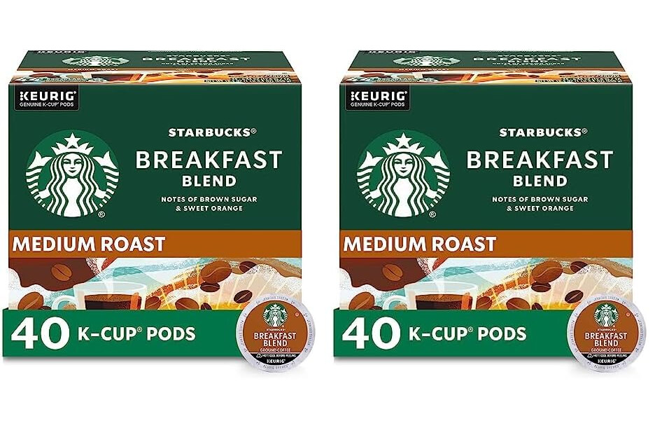Starbucks K-Cup Coffee Pods, Medium Roast, Breakfast Blend for Keurig Brewers, 100% Arabica, 1 Box (40 Pods) (Pack of 2)