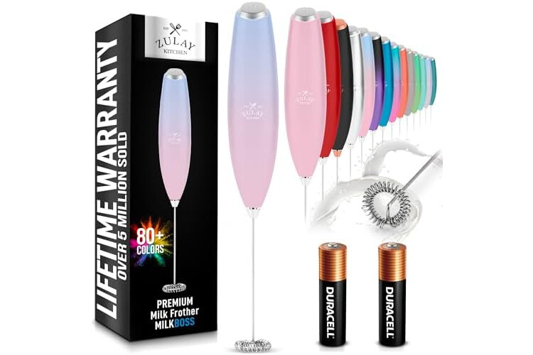 Zulay Kitchen Handheld Milk Frother with Duracell AA Batteries – Ultra Fast Electric Mixer & Foam Maker, Easy-Clean Drink Mixer for Coffee & More - Lavender