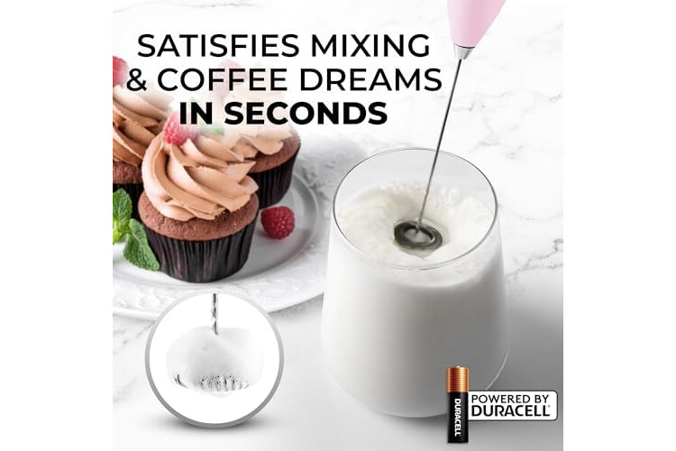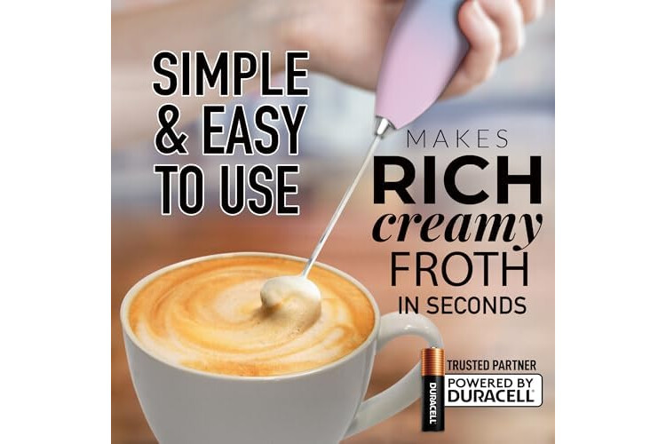• LIFETIME FROTHING ACCESSORY: This drink mixer, with rust-resistant stainless steel and a sleek nylon body, is built to be your coffee accessory for years. Powered by 2 Duracell batteries included, this coffee stirrer works on all types of milk, such as oat, soy, almond, and other dairy items like butter or cream.