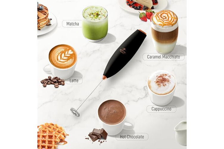 • CREAMY VELVETY FROTH IN SECONDS: Making coffee-shop-style recipes at home is as simple as it can be with this milk frother. The 13,000 RPM motor and 25 spiral rings on the whisk let you whip up rich foam in no time. Level up your everyday warm or cold coffee, latte, cappuccino, hot chocolate, matcha, or powdered drinks with this frother.
