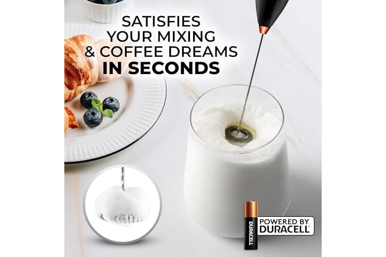 • LIFETIME FROTHING ACCESSORY: This drink mixer, with rust-resistant stainless steel and a sleek nylon body, is built to be your coffee accessory for years. Powered by 2 included Duracell batteries, this coffee stirrer works on all types of milk, such as oat, soy, almond, and other dairy items like cream.