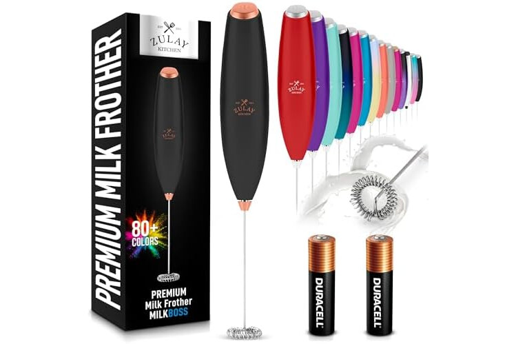 Zulay Kitchen Milk Frother Handheld Electric Whisk with AA Duracell Batteries – Durable Drink Mixer for Coffee, Lattes, Cappuccinos & More - Black Copper