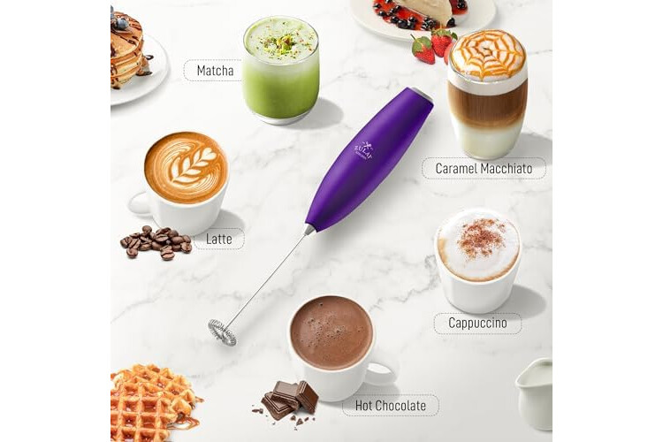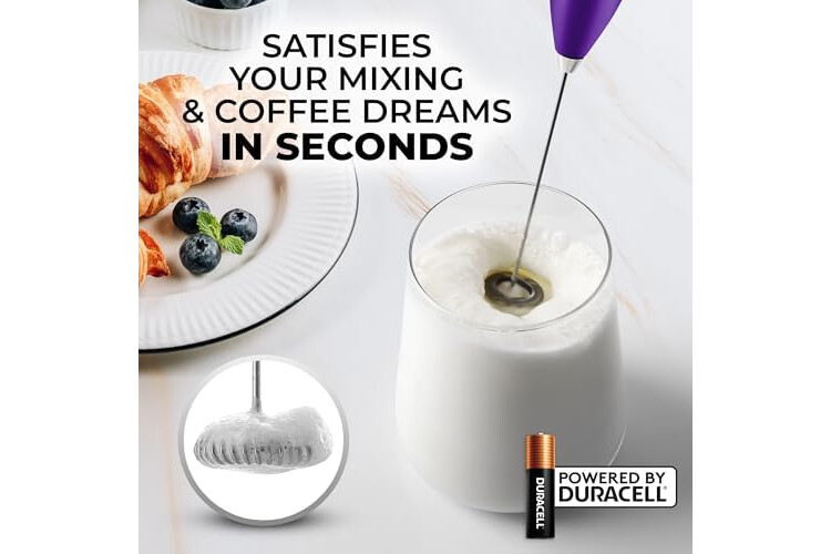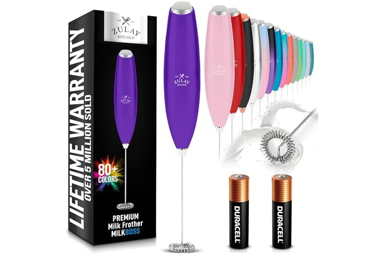 Zulay Kitchen Milk Frother Handheld Electric Whisk with AA Duracell Batteries – Durable Drink Mixer for Coffee, Lattes, Cappuccinos & More - Purple